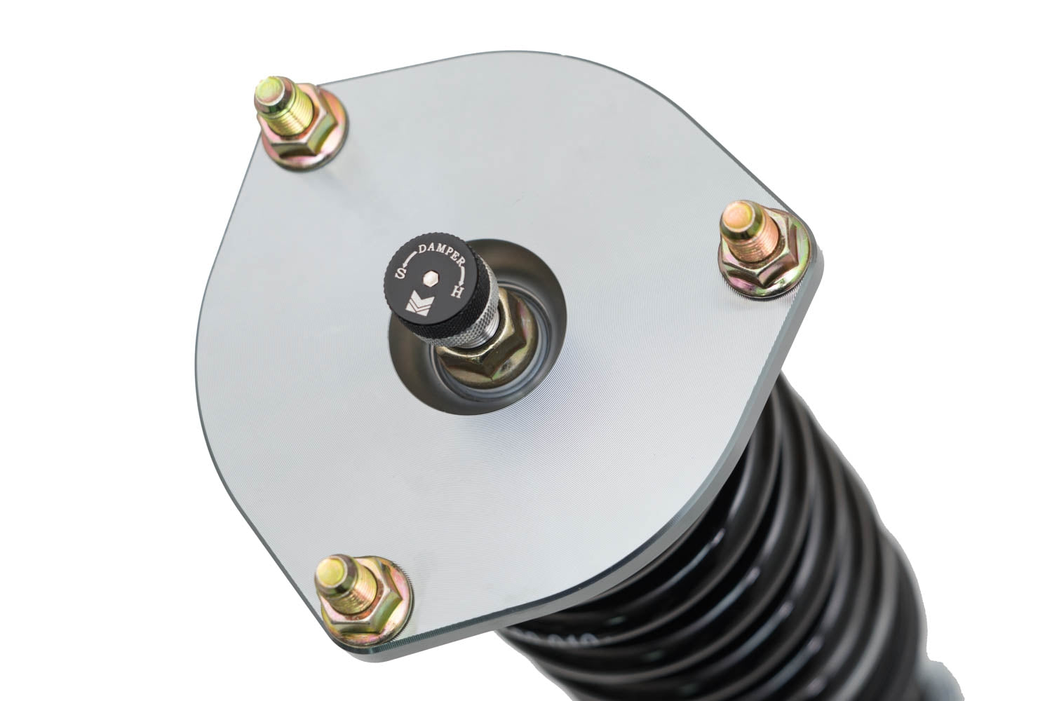 Ride height adjustments are achieved through precision-machined locking spring perches, providing smooth, accurate, and repeatable adjustment. Independent shock length adjustment allows ride height changes without affecting spring preload, ensuring consistent damper performance across a wide range of ride heights. This flexibility allows for a conservative drop for street use or more aggressive settings optimized for circuit performance and maximum handling potential.