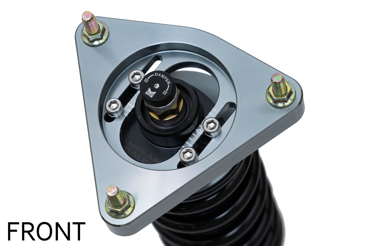 Ride height adjustments are achieved using precision-machined locking spring perches, providing smooth, accurate, and repeatable adjustment. Separate shock length and spring preload adjustment allow fine-tuning of suspension characteristics to suit different driving styles, road conditions, and circuit demands. The wide range of height adjustment supports both conservative drops and aggressive track-ready ride heights.