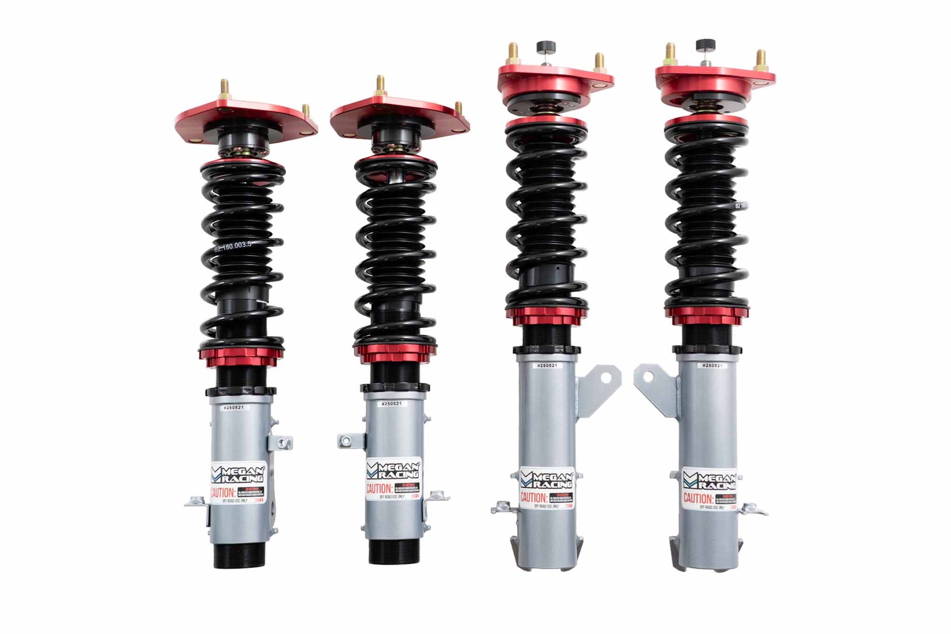 Built from durable steel with SAE-9254 cold-wound steel springs, each Megan Racing coilover is rigorously tested over 500,000 cycles for reliability. These kits are backed by a 1-year warranty against manufacturer defects.