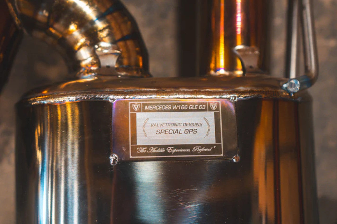 Experience a new level of performance and sound with the Valvetronic Designs Titanium Valved Exhaust System for the Mercedes AMG GLC 63 and GLC 63 S. Built from premium Grade 5 Titanium, this system reduces weight, increases exhaust flow, and unlocks the full character of the 4.0L Twin-Turbo V8.