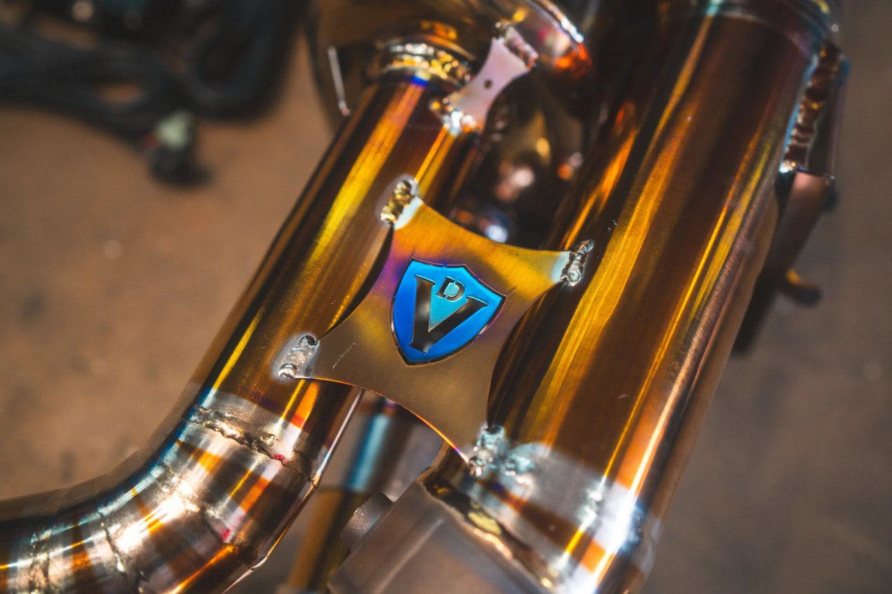 Constructed from either brushed T304 stainless steel or Grade 5 titanium (Ti 6Al-4V), the system is built to the highest standards with precision TIG welds and fully mandrel-bent piping for maximum flow and durability. It retains compatibility with factory valve controls, offering rapid response to drive mode changes. The system is also 100% reversible, allowing you to return to stock setup if desired.